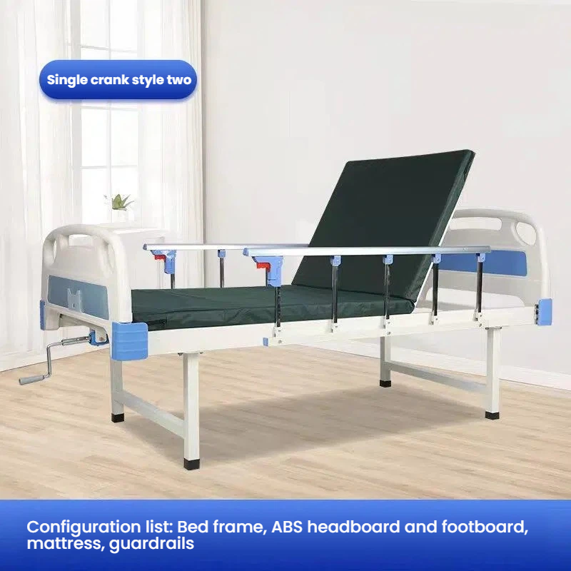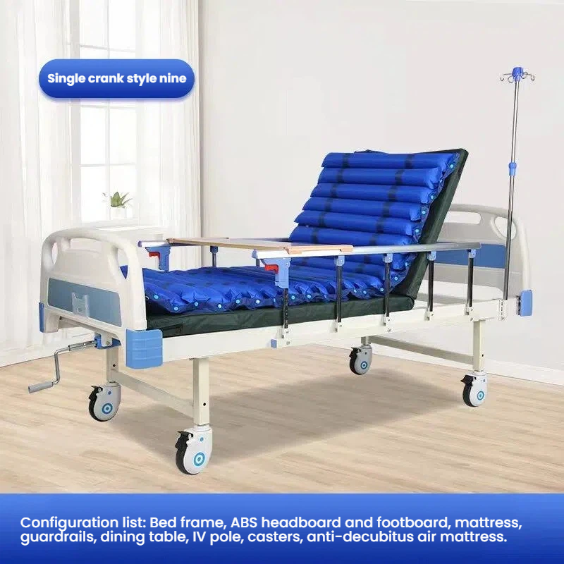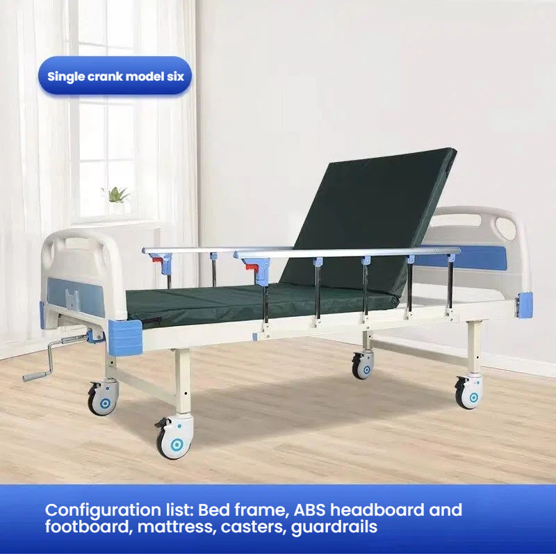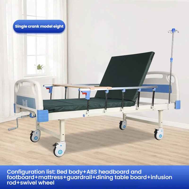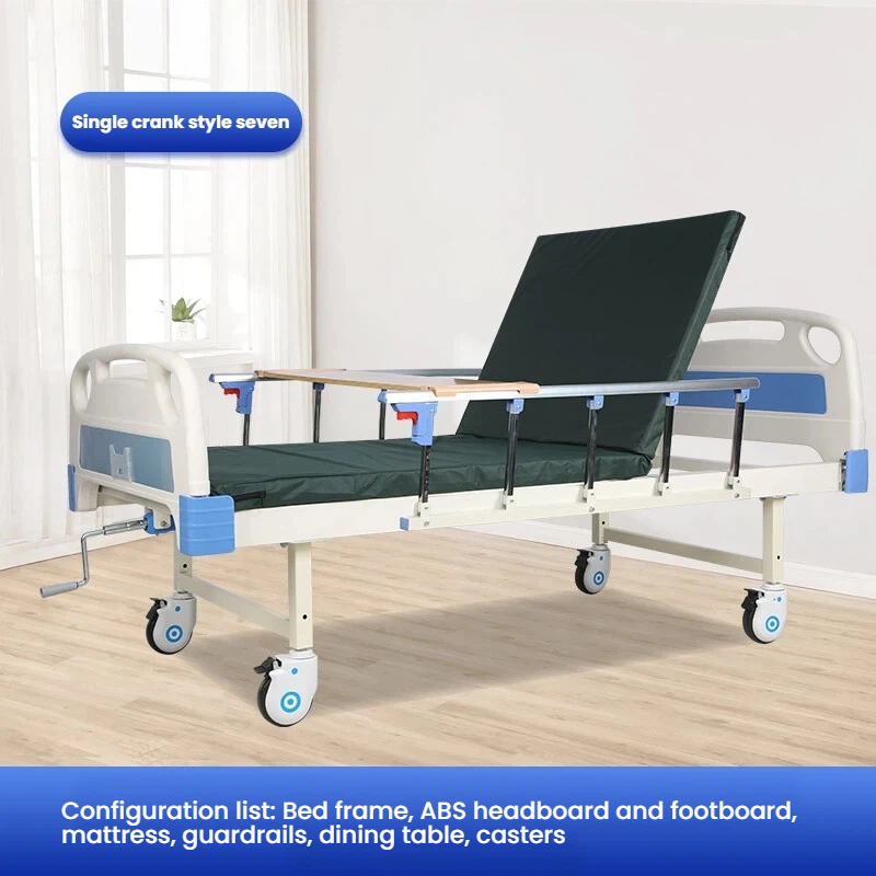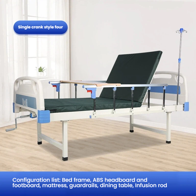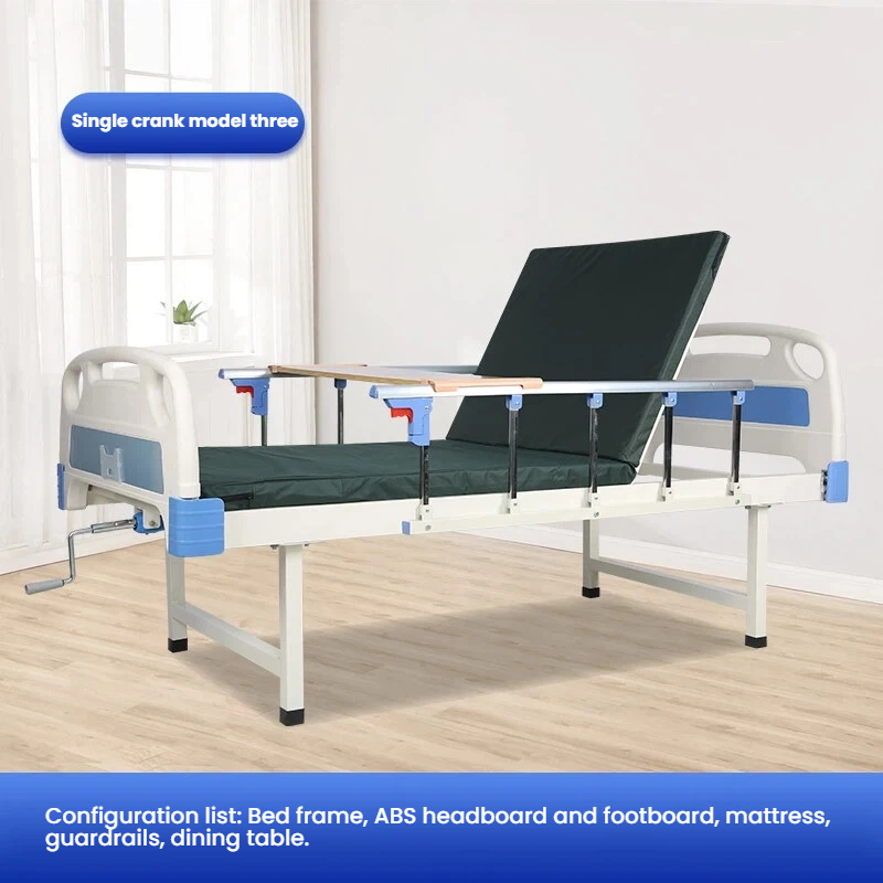Care does not require hard resistance Manual nursing bed with flexible adjustment of back up and leg flexion angles The joystick is labor-saving and easy to operate The guardrail can be folded for easy access to and from the bed Equipped with a dining table board for easy mobility.